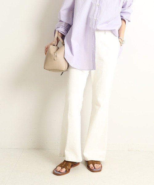 【2021AW】 IENA 一気に今年顔に見せてくれるフレアパンツ。 ロウデニム(=生デニム)っぽく見せているこのデニムは、デニム特有の経年変化(色落ち)が無く、クリーンでパリっとしたワンウォッシュの質感や色をキープできる仕上げ加工にしています。 凛としたきれい目なデニムで、定番のセミフレアよりもフレア感を強めのパターンにしていて、スタイルアップ効果のあるデザインです。 デニムシャツやベストなど、ネイビーのワントーンレイヤードルックは今年のおすすめです。 ホワイトは秋冬シーズンにも意外と活躍してくれるカラ―です。 ********************** 透け感:ホワイトはややあり 裏地:なし 伸縮性:ややあり 光沢感:ネイビーはややあり 生地の厚さ:普通 ********************** 【スタッフ着用コメント】 《スタッフC》 年齢:20代後半/身長:164cm/体型:細身/普段サイズ:S〜M/着用サイズ:36 サイズ感:ウエストはフィット感がありましたがフレアで体から離れるので窮屈感はありませんでした。 素材感:ややハリ感のあるデニム素材。ラインがきれいに見えます。 着用感:メリハリのあるトレンドライクな1本です。デニムなのでどんなコーデにも取り入れやすく大人カジュアルにぴったりです。 《スタッフB》 年齢:30代後半/身長:155cm/体型:普通/普段サイズ:S/着用サイズ:36 サイズ感:全体的に少しゆとりのあるサイズ感。着丈もやや長めだったのでワンサイズ下でもよさそうでした。 素材感:ややハリのあるデニム素材。カジュアルすぎないデニムです。 着用感:フレア感がしっかりあるデザインでいつもと違ったデニムでした。ヒールを合わせるとよりスタイルよく見えるデニムです。 ********************** ※取り扱いについては、商品についている品質表示でご確認ください。 ※こちらの商品は、IENAでの取り扱いになります。 直接店舗へお問い合わせの際はIENA店舗へお願い致します。 ※商品の色味は、撮影場所や光のあたり具合などにより色味が違って見える場合が御座います 。 また、お客様のお使いのPCのモニター環境などにより色味が違って見える場合が御座います。予めご了承の上ご注文下さい。 洗濯:洗濯機使用可 ファスナー有りです。 ストレッチ有りです。