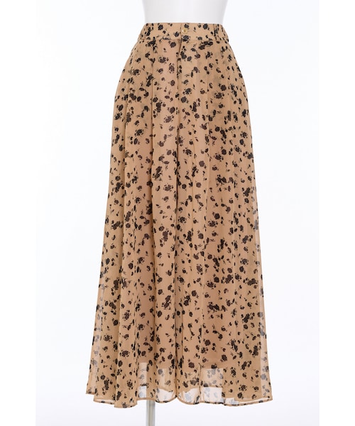 歩くたび花びらのようにひらりと揺れる、花影舞うハイウエストシフォンパンツ。 たっぷりとギャザーをいれてスカートのようなボリューム感と華がありながら、動きやすくシャープさのでるAラインのパンツデザイン。 一着でパンツとスカートのいいとこ取りな、一度着たらやみつきになるデザインです。 マットゴールドのフロントボタンが甘すぎないポイントに。 同じテキスタイルを使用したジャケットを合わせた、セットアップスタイルが今季のおすすめ。