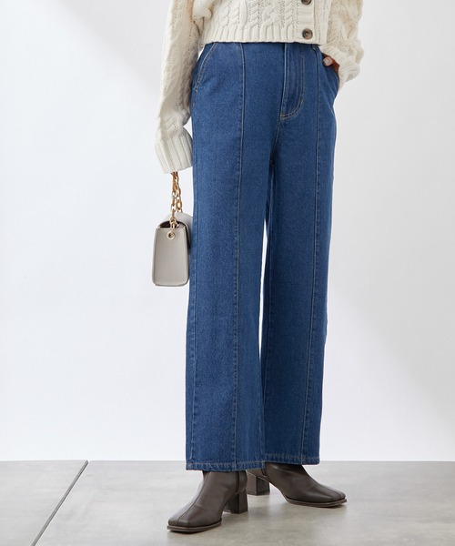 【スタイリングの主役になるデザインデニム】 絶妙なカラーリングと縦ラインを強調するセンターシームがこなれ感を演出。 太すぎず細すぎない絶妙なシルエットで、股上深めのハイライズがこだわりのシルエットの一本。 ウエストゴムを背面に施しているため、着用感もストレスフリー。 幅広いスタイリングにお使いいただけるアイテムです。 ・美脚を演出するセンターの切替デザイン ・ウエスト後ろ部分はゴムになっているので快適な履き心地 ・オールシーズン使えるので1着持っていると重宝するアイテム 【コーディネート】 オールシーズン幅広いスタイリングで活躍してくれるアイテム。 トップスインにし、トレンドのTシャツやシアーシャツ、ブラウスなどの相性抜群。 ロンT、トレーナー/スウェット、パーカー、などと合わせカジュアルスタイルもお楽しみいただけます。 様々な形のスニーカーやサンダル、ブーツなど、シューズ合わせが豊富なのもポイント。 ■素材・洗濯について 本体: 綿100% 別布部分: ポリエステル80%, 綿20% 洗濯:洗濯機使用可(弱・ネット使用) 着用スタッフ 157cm ※着用、お取り扱いの際は、商品についている品質表示とアテンションタグを必ずご確認下さい。 ※商品タグに記載されている商品名がWEBでの表記名と異なる場合があります。 ※画像の商品はサンプルです。実際の商品と仕様、加工、サイズが若干異なる場合がございます。 ※照明の関係により、実際よりもやや明るく見える場合がございます。またパソコンなどの環境により、若干製品と画像のカラーが異なる場合もございます。予めご了承くださいませ。 【お気に入り登録】してお得な情報をCHECK!! ・「商品のお気に入り登録」で再入荷通知や、ラストの通知、セール通知も受け取ることができます。 ・「ブランドのお気に入り登録」で新商品や再入荷など、お得な情報を受け取ることができます。 __________________________________________________________