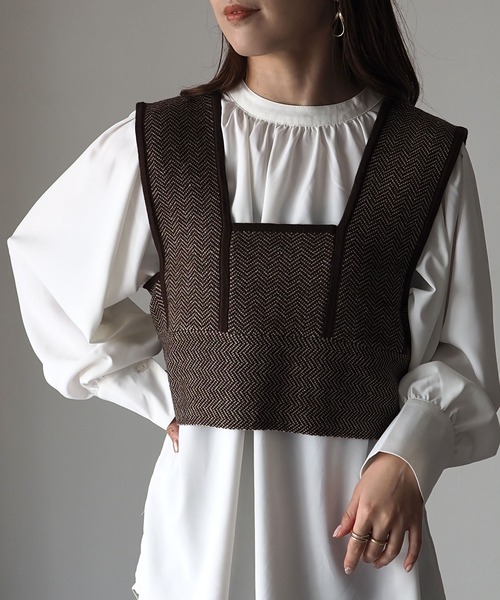 【Riberry ジャガード編みニットビスチェ】セットアップとしても使える、トレンドのジャガード編みのニットビスチェ■StylingロンTやブラウスをインナーに入れて、さりげなく柄を取り入れたコーデがおすすめ。インナーの丈は長めの方がバランスよくまとまります。デニムやスラックスとの相性もGOOD。同柄のスカートとセットアップで着用してもオシャレです♪■Detailヘリンボーン柄のジャガード編みがかわいいニットビスチェ。総柄ですが、シンプルなヘリンボーン柄で合わせやすい1枚です。レースアップや、ふちのパイピング風デザインも今っぽい♪■Materialしっかりとしたジャガード編みのニットです。編み地がしっかりしており、インナーにも負けない存在感があります。※詳しいお手入れ方法は商品タグをご参照ください。【Information】◆《お気に入り登録》がオススメ◆・「商品のお気に入り登録」で再入荷通知や、ラストの通知、セール通知も受け取ることが出来ます。・「ブランドのお気に入り登録」で新商品や再入荷など、お得な情報を受け取ることが出来ます。※撮影時のライティング、ご覧になっているモニター・PC環境により、実際の商品と色味が異なって見える場合がございます。予めご了承をお願い致します※ご注文いただいた予約商品のお届け時期の確認は、注文履歴ページより行えます。