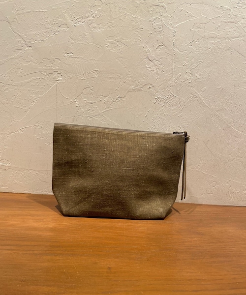 1950年代のFRENCH ARMY生地を使用した、「YVES ANDRIEUX」のポーチ。幅約30㎝の大き目ポーチで、小物がたっぷりと入り、バッグインバッグにもおすすめ。ホワイトとカーキの二色展開です。ヴィンテージ生地を使用しており、一点一点色味や風合いが異なります。《YVES ANDRIEUX》YVES ANDRIEUX(イヴアンドリュー)は、2003年に名立たるメゾンでの活躍の後、VINCENT JALBERTと共にブランドを設立。フランス各地から集めた50~60年代のアンティークファブリックやヴィンテージパーツを解体し再構築しています。一針一針丁寧に仕立て、新しい衣服やバッグ等の小物を製作している、ハイエンドなブランドです。importgoods