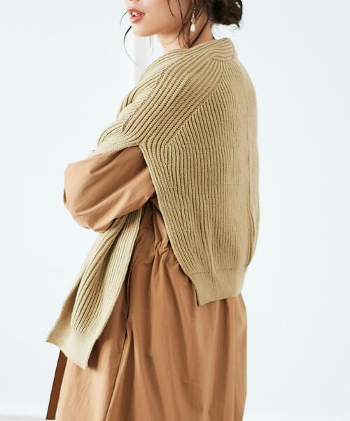 スタイリングのワンポイントとして重宝するショルダーマフラー。柔らかいニット素材が首周りを優しく包み込んでくれるマフラーはさっと肩にかけるだけでしゃれ感を演出。ニットを肩掛けしているようなデザインがポイントです。ベーシックに使えるベージュとブラウンの2色でご用意しました。