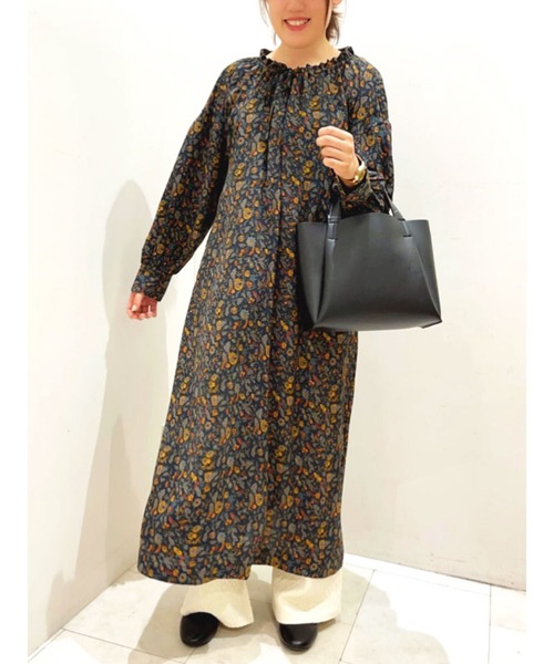レトロな花柄がニュアンスたっぷりの着こなしを演出するワンピース。 ロングレングスで上品なシルエットなのもポイントです。 首元に抜け感をプラスする、スキッパーネックでコーデを引き締めて。 これからのシーズンにぴったりな、フェミニンなムードたっぷりの1枚です。