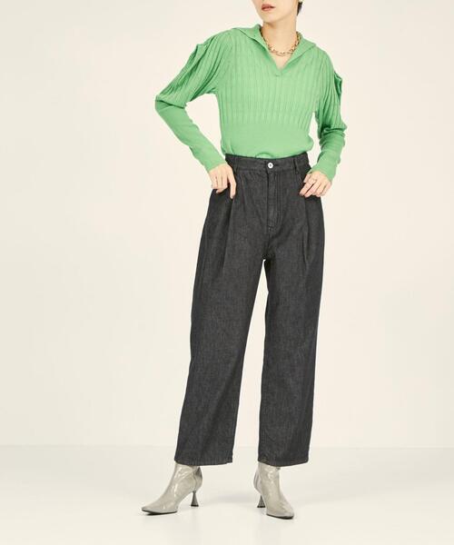ブランドアイコンのロゴゴムを取り入れた、イージーデニム。 ■デザイン タック入りのゆとりのあるサイジングに、 ジャストウエストで履きこめる今の気分に合うシルエット。 ライトオンスを採用し、軽くて着心地が良くシーズンレスで着用できる、既存のデニムと差別化を図った1本です。 ■素材 薄手のデニム素材。 ■コーディネート ジャストウエストで履きこめるシルエットを活かして、タイトなトップスと相性〇。 軽くやわらかな素材なので、厚手のニットなどと合わせてもかさばらずに着られます。 ============================ 裏地:なし 透け感:なし 生地の伸び:なし 光沢感:なし ポケット:なし ケア方法:ドライクリーニング・洗濯機洗い可 《ご注意》インディゴ染料使用製品。他の物と分けて洗う。 つけ置き洗い・濡れたままの放置禁止。摩擦により他の物へ色移りすることがある。 雨や汗で湿った状態では特に注意。 ============================ <BRACTMENT(ブラクトメント)> グリーンレーベル リラクシングから生まれた『BRACTMENT(ブラクトメント)』。 2021 Autumn & Winter のコンセプトは「Play GENTLE」 自分に心地よくゆるやかな気持ちでファッションを楽しんでみる オーセンティックなアイテムや、サイジングでメンズライクを取り入れたり 新しいテイスト、アイテム、カラーに挑戦してみる 今のカルチャーもMIXしてスタイルを作る 自分のために 気分を上げていく服 【注意事項】 ※商品を使用前に、タグ等に記載されている「取り扱い上の注意書き」、「洗濯表示」を必ずご確認ください。 ※商品画像は、光の当たり具合やパソコンなどの閲覧環境により、実際の色味と異なって見える場合がございます。予めご了承ください。 ※商品の色味の目安は、商品単体の画像をご参照ください。 店舗へお問い合わせの際は、全国のgreen label relaxing各店舗まで下記の品名/品番をお申し付け下さい。 品名:BM プレストタックデニム 品番:36146992264