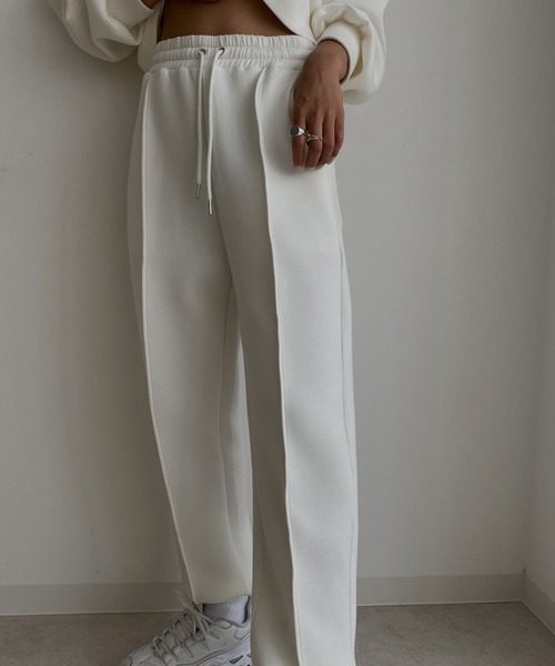 セットアップ着用可能◎スウェットパンツ【特徴】ピンタックデザインを入れることで、カジュアルすぎない様々なアイテムに合わせやすいデザインに仕上げました。ウエストは、着脱のしやすいゴム使用です。【スタイリング】同生地を使用したボンディングプルオーバーとの着用がおすすめです。ハイウエストで着用し、クロップド丈のトップスと合わせると、さらにスタイルアップ効果抜群です!【FABRIC】ボンディング素材を使用し、強度と保温性に優れた1枚。厚みがありながらも、軽い素材のため、1年中着用可能です。※撮影場所により実際の色味と若干異なる場合がございます。 あらかじめご了承くださいませ。 *********************************************************◆透け感:なし◆厚み:厚い◆裏地:なし◆伸縮性:あり*********************************************************【お買い物におすすめの便利機能】▽商品のお気に入り登録完売カラーの再入荷時や、在庫1点の時、セール開始時にお知らせ致します。▽ブランドのお気に入り登録新商品や再入荷、セール情報等、いち早くブランドのお得な情報を受け取る事が出来ます。ぜひご活用ください。
