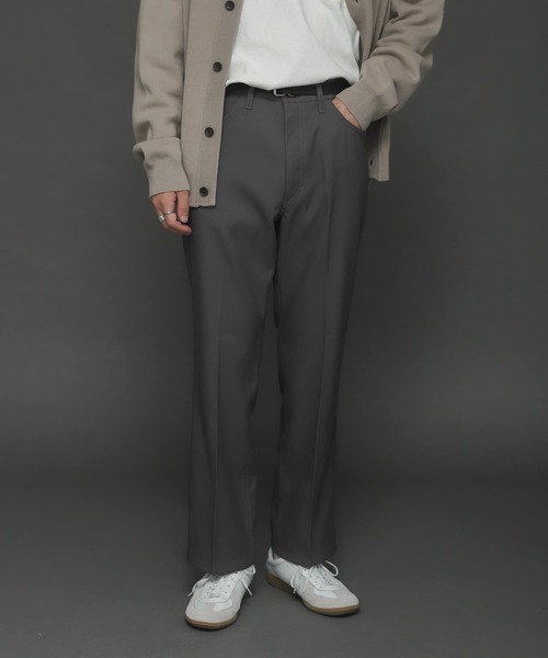 ストレッチ性のあるさらっとした生地を使用したドレスパンツ。 〇1960年代の誕生以来、幾多の改良を重ねながら多くのファンを獲得し続けているロングセラーモデル 〇センタープレスのドレッシーな雰囲気に、ワークウエアらしい気軽さ、イージーケアを兼ね備えた実用性の高さが人気の秘密 styling クラシカルなデザインは、ビジネスシーンからきれいめカジュアル、古着ミックスのビンテージスタイルまで幅広くマッチします。細身のきれいなシルエット、ジャージのように穿きやすい生地感。何色か揃えると重宝すること間違いなしのお役立ちアイテムです material [Wrangler/ラングラー] リーバイス、リーと共にアメリカの3大デニムブランドに挙げられるWrangler。1904年に設立されたハドソン・オーバーオールcoを源流とし、何度となく合併や吸収を繰り返してジーンズを発売したのは1947年。比較的後発でありながらも、デザイナーのロデオ・ペンを起用するなど頑丈一辺倒であったウエアにファッション性をいち早く取り入れることで成長を遂げる。カウボーイのためのウエアをコンセプトに誕生したそのプロダクトは全米のカウボーイ達や世界中のウエスタンファンから絶大の信頼を受けている。 ※色落ちや色移りがしますので、他の物と一緒に洗ったり、浸け置き洗いはお避けください。 ※汗や雨などで湿った状態、および摩擦によって色移りすることがあります。 ※その他お取り扱いに関しましては、商品に付属のアテンションタグをご覧ください。 ※商品画像は、光の当たり具合やパソコンなどの閲覧環境により、実際の色味と異なって見える場合がございます。予めご了承ください。 ※商品の色味の目安は、商品単体の画像をご参照ください。 ----------------------------- 透け感:なし 伸縮性:ややあり 裏地:なし 光沢:ややあり ポケット:あり -----------------------------