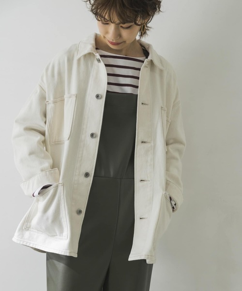 【メンズライクなサイズ感が今年らしい、注目のデニムジャケット】 11.5ozのデニム生地を使ったカバーオール。ステッチやポケット、サイズ感など細かい部分までこだわった、ワークウェア要素たっぷりの1着。腰回りが隠れるくらいの程よいオーバーサイズで、スタイリングに取り入れやすいデザインです。 POINT ・季節の変わり目に活躍のオーバーサイズデザイン ・ディテールまでこだわりの詰まった1枚 ・流行問わず使えるデニムジャケット COORDINATE レザー素材やサテン素材など、ツヤ感のあるアイテムとのコーディネートがおすすめ。 ※この商品は、染色の特性上、着用中の摩擦や汗などにより他の衣類や下着、淡い色のベルトやカバン、ソファーなどに色移りすることがあるので、コーディネートや取り扱いにご注意ください。 ※日光や照明などに長時間当たると変退色することがあるので、高温多湿を避け光の当たらない場所で保管してください。 ※その他お取り扱いに関しましては、商品に付属のアテンションタグをご覧ください。 総重量 : 約705g ※商品画像は、光の当たり具合やパソコンなどの閲覧環境により、実際の色味と異なって見える場合がございます。予めご了承ください。 ※商品の色味の目安は、商品単体の画像をご参照ください。 ----------------------------- 透け感:なし 伸縮性:なし 裏地:なし 光沢:なし ポケット:あり -----------------------------