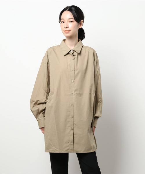 袖のボリューム感が可愛らしいシャツ。 ベーシックな衿デザインも上品な印象。ドロップショルダーでゆとりがあり、ロング丈で気になるボディラインもカバーしてくれます。 シンプルに着るのはもちろん、ボタンを開けて羽織ったりと、様々な着こなしのアレンジも楽しめるアイテムです。