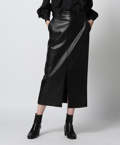 【スタイリスト亀恭子さんとお作りした、今季スタイリングに取り入れたい!フェイクレザ―ナロースカート】 スタイリスト亀恭子さんが気になるスリット入りのナロースカートをトレンドのフェイクレザ―で仕立てました! コンパクトなストレートシルエット、前裾に入ったスリットでシンプルながらトレンド感たっぷりのデザイン。 ハイウエストで太めのウエスト切り替えで腰回りをスッキリ、腰の位置を高く見せて、スタイルアップ効果もばっちり。 後ろに入れたゴムが機能的でありながらモードな雰囲気を纏っています。 <素材説明> 程良い厚みでストレッチ性のあるフェイクレザーを使用。 柔らかくしなやかに体になじみ体をすっきりときれいに見せてくれます。 <着こなし、スタイリングのおススメなど> 秋はTシャツやブラウス、冬はふわふわとしたニット合わせと、シーズンレスに活躍するのもフェイクレザ―の魅力のひとつ。 特に亀さんの今季おすすめのスタイルはフリルブラウスにショートブーツのレディライクなスタイリング! または、あえてスウェットとスニーカー合わせででカジュアルMIXしたスタイルも今っぽさがありおすすめです! もちろん冬はざっくりしたニットとのスタイリングも素敵です。 毛足のあるふわふわとしたニットも、フェイクレザ―合わせなら甘くなりすぎずスタイリッシュなスタイルに格上げしてくれます。 ※ポケット数:横×2 ※裏地あり こちらの商品は主に秋に着用いただける商品です。 モデル情報:身長175cm B80 W60 H88 着用サイズ:38(M) 店舗へのお問い合わせ商品番号:085-73055 ●製品寸法: 34(SS):総丈80cm W64cm H90cm 36(S):総丈81cm W67cm H93cm 38(M):総丈82cm W70cm H96cm 40(L):総丈83cm W73cm H99cm 備考: