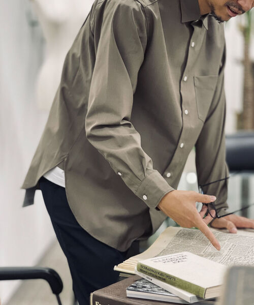 ウエストシェイプを省いたほど良くゆとりのあるボックスシルエットのレギュラーカラーシャツ/ とろみシャツ。タックイン・アウトを問わず着られ、またジャケット・ブルゾン、スラックス・デニムなど、合わせるアイテムを選ばない汎用性の高い1着です。ウールがベースのシャツの為、程よい落ち感が上品なスタイリングを演出してくれる高級感あるシャツです。※店頭及び屋外での撮影画像は、光の当たり具合で色味が違って見える場合があります。商品の色味は、スタジオ撮影の画像をご参照下さい。※製品洗い加工の商品は、寸法に個体差が発生する場合があります。※商品画像に関しては出来る限り忠実に表示出来るよう努めておりますが、お客様がご利用のモニターの設定及び特性により、実際の商品と比較し色味に若干の誤差が生じる場合があります。※画像の商品はサンプルとなりますので実際の商品と仕様、加工、サイズが若干異なる場合がございます。※お取扱い上のご注意アテンションタグを必ずご確認の上、着用又はお取り扱い下さい。