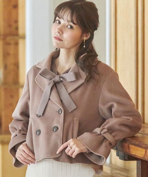 お袖が可愛いショートコートの登場☆毛足が長めでやわらかい風合いの生地を使用することでフェミニンっぽく見えるようになっています!ボトムを選ばないショート丈なのでコーディネートの幅が広がります!キャンディになった袖や背中のタックなどデザインがしっかり入っているのでコーディネートがさらにかわいく♪