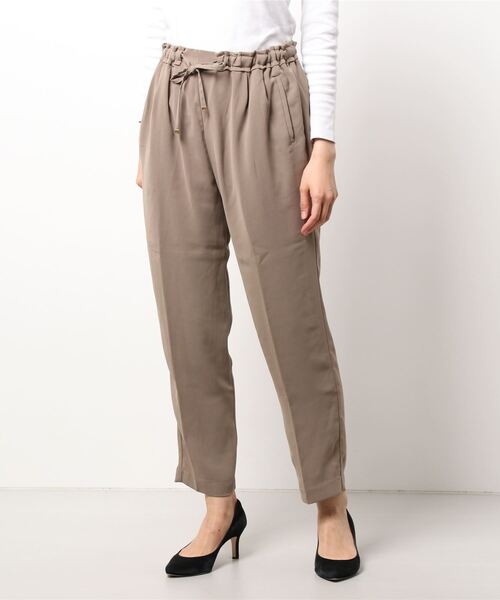 テーパードシルエットですっきりと穿けるパンツ。ノンストレスなイージーウエスト仕様もうれしいポイントです。さらっと軽やかな素材感で肌当たりが優しい1枚。きれいめなカジュアルスタイルに大活躍間違いなしの、優秀アイテムです。