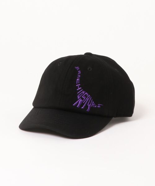 キッズに人気の恐竜をモチーフした刺繍キャップです。 恐竜の名前のスペルでその恐竜のフォルムを作ったユニークな刺繍デザインがポイントです。 定番のブラックや、コーデのアクセントに最適なパープルやグリーンをラインナップ。