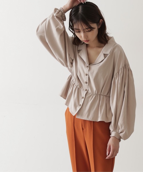薄手のスエードライクな生地を使用した開襟ブラウス。軽い羽織りとしても、中にシアーニットとレイヤードスタイルも楽しめます。トレンドのボリュームスリーブが特徴で、今回は袖下によりボリュームをもたせました。袖口の半分がシャーリング仕様なので、腕まくりをして手首を見せても可愛いです。ウエスト位置が高く見えるショート丈のペプラムラインで、スタイルアップが狙えます。ボトムスを選ばず合わせやすいアイテムです。ウエストはギャザーゴムで着心地が楽ちんです。●商品特性●〇透け感:なし〇生地の厚さ:普通〇裏地:なし〇伸縮性:なし〇光沢:なし〇シルエット:スタンダード〇インフォメーション〇 ★商品のお気に入り登録 登録すると、完売しても再入荷時に通知を受け取ることができます。 ほかにもお得な特典があるかもしれません♪ ★ブランドのお気に入り登録 新商品や再入荷などの情報を受け取ることができますので、是非ご登録ください♪