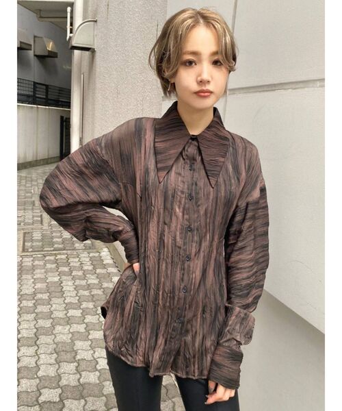 ■シルエットにこだわったボリュームスリーブシャツ■ボリュームスリーブのシャツ。シルエットにこだわり、華奢に見せるデザインが魅力です。シワ加工が施されているので、他とは少し違う風合いを楽しむ事が出来ます。おすすめカラーはライトミックスです。絶妙なカラーが目を引き、スタイリングのポイントになります。1枚で着るのはもちろん、ワンピースやベストのレイヤードアイテムとしても活躍します。これからの季節に1枚持っていると便利なアイテムです。※画像の商品はサンプルです。実際の商品と色味、仕様、加工、サイズ、素材等が若干異なる場合がございます。----------------透け感:なし伸縮性:なし生地の厚さ:普通サイズ感:普通裏地:あり----------------