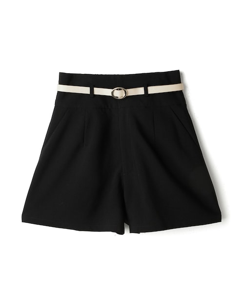 ハイウエスト&ショート丈で美脚効果が抜群。 ベルトでウエストをマークすれば、よりフィット感のある履き心地に。 金属製のバックルがさりげないアクセントに。 フレアに広がる裾が華奢見えを叶える。 ★ポケット付きです。 ★バックウエストゴム入りです。 ★ベルトは取り外し可能です。