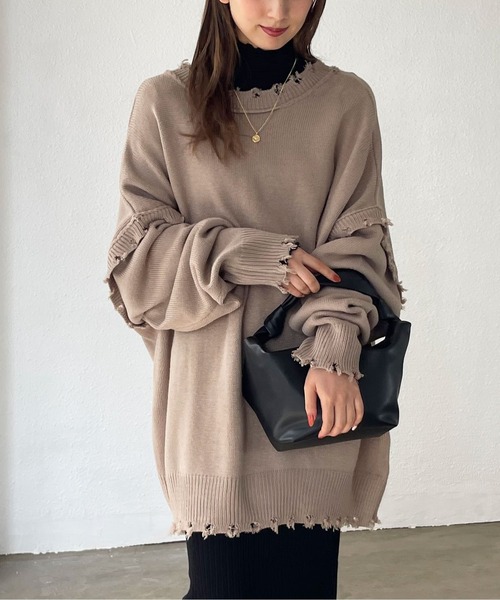 前後2wayでトップスとしても羽織りとしても着用できるニットカーディガン。 《styling》 前後どちらでも着られるデザインのニットカーディガン。 ゆるめのサイズ感で、さっと羽織るだけでこなれたスタイリングに。 《detail》 ・肩が落ちたゆったりめのサイズ感が華奢見えするカーディガン。 ・カジュアルアイテムながら女性らしさを醸し出す、ドロップショルダーと長めの袖丈 ・リブはランダムに断ち切りの仕様でコーディネートに抜け感をプラス。 ・袖部分を切り替え、立体感を持たせることでシンプルなワンカラーも表情のある着こなしに。 ・前を閉じてトップスとしての着用はもちろん、羽織りとしても活躍すること間違いなし