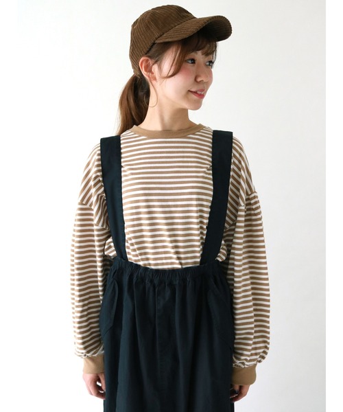 細身のボーダー柄で爽やかな印象に仕上げたロングスリーブTシャツ。 ボリュームのある袖がフェミニンな女性らしい印象を演出してくれます。 シックな配色でコーディネートにも品良く映え、カジュアルから綺麗めコーデにと、幅広く活躍してくれるアイテムです。