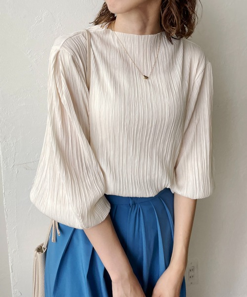 上品な雰囲気漂うパフブラウス細かめのプリーツが上品で大人な表情。オンオフ問わず様々なシーンで活躍してくれる1枚です。・落ち着いた品のあるスタイルを演出・広がりすぎないパフスリーブもポイント・プリーツの縦ラインが細見え効果をプラス・オケージョンシーンにも◎・インスタイルですっきり着るのがおすすめ**********************透け感:ホワイトのみあり裏地:なし伸縮性:なし光沢感:ややあり**********************▼手洗い可能▼スタッフレビュー◎身長163cmプリーツ×パフ袖の女性らしさ詰まった1枚!プリーツのアイテムってシンプルになりがちですが、1枚着としてもインナーとしても使える便利なアイテムです。デニムやカラーパンツなどカジュアルアイテムから、スカートで大人に着こなせて幅が広がりそうです!身体のラインも拾いすぎないサイズ感なのも嬉しいです。※撮影場所やお使いのモニター環境により若干お色味が異なる場合がございます。特にロケの撮影では明るく見える傾向にございます。※商品はサンプルで撮影をしております。若干の仕様が変更になる場合がございますので予めご了承の上ご注文くださいますようお願いいたします。▼商品のお気に入り登録完売カラーの再入荷通知や、ラスト1点の通知、セールの通知も受け取ることができます。▼ブランドのお気に入り登録新商品や再入荷など、いち早くブランドのお得な情報を受け取ることができます。