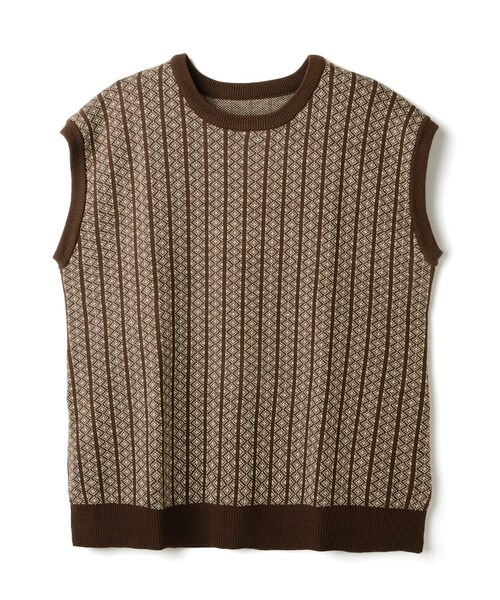 レトロなジャガード柄がトラッドな印象に見せる。 深めに入ったバックスリットが後ろ姿に遊び心を盛り込む。 広めのネックラインでさりげなく綺麗なデコルテをアピール。 ベーシックなトップスに重ねるだけで、オシャレ度がアップ。 ★裁断の関係で、柄の出方が写真と多少異なる場合があります。 ★伸縮性があります。 ★素材の特性上、カラー・形・サイズが、写真・サイズ表示と多少異なる場合があります。