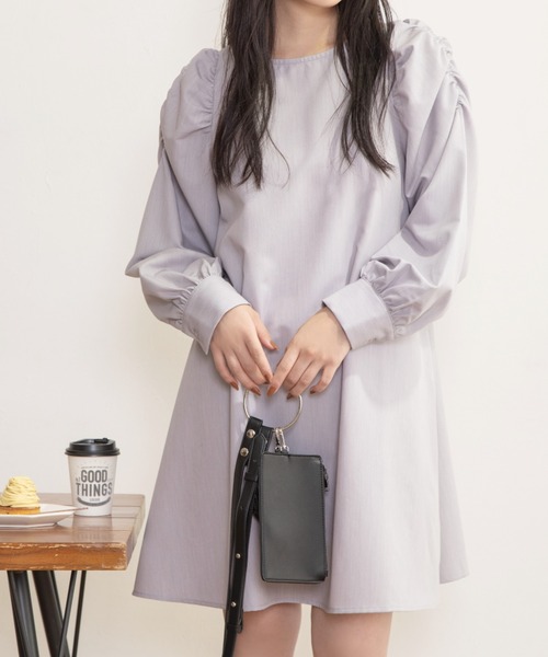 1枚でかわいいパワショルワンピース♡ <MATERIAL> レイヤードしやすい厚みの軽やかな素材。 ポリウレタン混なので動きやすいです。 ※インナーの透けづらい生地ですが、淡色カラーで気になる方には、ペチコートやベージュインナー、ショートパンツを合わせるのがおすすめです。 <DESIGN> トレンドのパワショルとたっぷりギャザーの入ったボリューム袖が女の子らしいパワショルワンピース フレアなAラインのシルエットが自然に体型をカバーし、 浅く広めのネックラインは首をすっきり見せてくれる効果も◎ 162cmスタッフ着用で膝上の丈感と低身長さんも高身長さんもかわいく着ていただけるサイズ感になっています! 中にデニムパンツを合わせてチュニックとしても◎ ブーツ合わせや、ニットベストとのレイヤードの秋コーデもおすすめです♪ <関連ワード> ミドル丈:ミモレ丈:膝丈:膝下:体型カバー:ボリュームスリーブ:重ね着:ギャザー:杢:杢調:クルーネック:袖山ギャザー:涙あき:釦:カフス:カフスボタン:チュニック:シャツワンピ:シャツ素材: <CARE> ※詳しくは製品に付属している洗濯表示をご参照ください。 ※撮影環境により、多少実際のカラーと異なる場合がございます。 また、携帯やスマートフォン、パソコンなどの画面上と実物では多少色が異なって見える場合がございます。