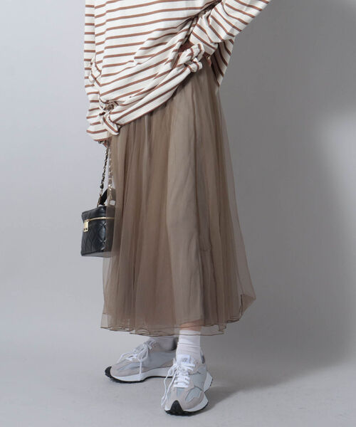 ◇fredy couleur◇【2021AW】透け感のあるチュール生地が女性らしい印象のギャザースカート●夏はTシャツ、冬はスウェットやニットと合わせられオールシーズン活躍するアイテムです◎●シルエットは広がりすぎず大人っぽく着こなせます。●幅のあるウエストゴムでウエストインもきれいにきまります。●ブラウン・チャコールグレーの合わせやすい落ち着いたカラー透け感:なし裏地:あり伸縮性:なし光沢感:なし生地の厚さ:やや薄手●お取扱い上のご注意●*アテンションタグを必ずご確認の上、着用又はお取り扱い下さい。*店頭及び屋外での撮影画像は、光の当たり具合で色味が違って見える場合があります。商品の色味は、スタジオ撮影の画像をご参照下さい。*商品画像に関しては出来る限り忠実に表示出来るよう努めておりますが、お客様がご利用のモニターの設定及び特性により、実際の商品と比較し色味に若干の誤差が生じる場合があります。◇商品のお気に入り登録◇【お気に入りに登録 ♡マークをクリック!】を是非ご活用ください。再入荷の通知や、ラスト1点の通知、セールの通知がいち早く届きます。 ◇ブランドのお気に入り登録◇新商品や再入荷など、いち早くブランドのお得情報が届きます。