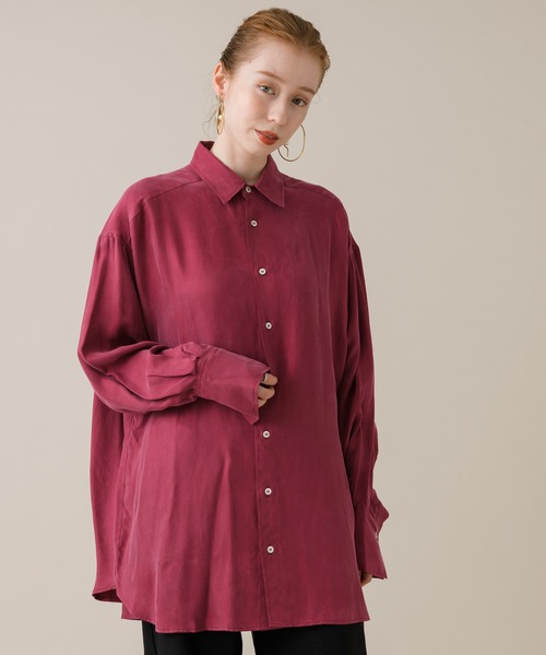 スモーキーカラーが季節を感じさせるシャツブラウス。 柔らかくしなやかなキュブラ素材を使用し、マットな質感とドレープ性があります。 光沢のあるボタンや袖のギャザーは、ブラウスのアクセントに。 ゆとりのあるサイズ感で、ボトムインや羽織りスタイルで抜け感をお楽しみいただけます。 《CLOCHE クロシェ》 ”可愛くお洒落に”に応える、よりリアルな大人可愛いアイテムを提案します。