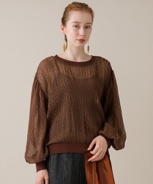 シアー素材がオトナの表情を引き出すドットブラウス 細かいドットとダークなカラー生地からの肌見せが大人のおしゃれを格上げするアイテム。 ボリュームたっぷりの袖もエレガントな印象を演出します。 シアー素材なので、タンクトップやキャミソールと合わせてインナー見せコーデでお楽しみいただくのがおすすめです。 《ROSIEE(ロージー) 》マスキュリンなテイストの中に女性らしさと程よいリラックス感をミックスした日常に溶け込むモード感を持つROSIEE。 クリーンな中に少量の毒を含ませたような一癖あるデザインで特別感を演出。 自分らしさを確立した、自分だけのスタイルを持つ女性へ向けたブランド。 時代の「今=トレンド」をいち早くキャッチした、洗練された大人の女性の為のリアルクローズを提案します。