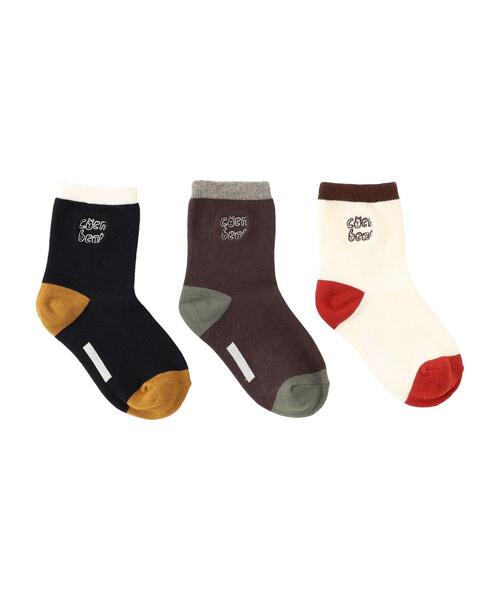 【お得な3足セット】落ち着いたブロックカラーが秋冬スタイルの足元にぴったり 秋冬らしい配色で仕上げたブロックカラーの靴下3足セットです。 フェイスモチーフが隠れた、グラフィカルなロゴ刺しゅうを足首部分にあしらっています。 足底に名前の記入欄が付いているため、保育園、幼稚園、小学校の行事などお着替えのある日にも安心です。 ソフトな風合いで肌触りがよく、履き心地も快適です。 兄弟姉妹、親子でペアコーデにもオススメです。 レディース品番:78806180009 対応サイズ17-23cm 【注意事項】 ※商品を使用前に、タグ等に記載されている「取り扱い上の注意書き」、「洗濯表示」を必ずご確認ください。 ※商品画像は、光の当たり具合やパソコンなどの閲覧環境により、実際の色味と異なって見える場合がございます。予めご了承ください。 ※商品の色味の目安は、商品単体の画像をご参照ください。 店舗へお問い合わせの際は、全国のcoen bear各店舗まで下記の品名/品番をお申し付け下さい。 品名:Bear 3Pset ロゴ socks K 品番:7880-618-0008
