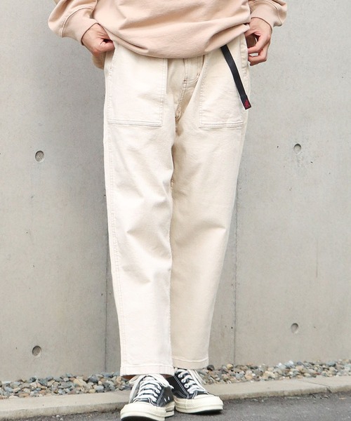 GRAMICCI / グラミチから DENIM LOOSE TAPERED PANTSが新登場! トレンド感のあるワイドシルエットのデニムパンツ。 GRAMICCIのブランドのルーツでもあるクライミングシーンにおける機能性は残しつつも、 現代のファッションシーンやライフスタイルに合わせたルーズなシルエットに。 グラミチ定番の180度開脚可能なガゼットクロッチ仕様で快適な履き心地に。 タフな生地感に加えて、ストレッチ素材による履きやすさを兼ね備えた万能デニム。 腰とヒップ周りにゆとりがあり、ひざ下から裾にかけて細くなるテーパードシルエットを採用。 履きやすさとシルエットの良さがあり、オールシーズンどの季節でも活躍するアイテムです。 サイドに付いた大きなポケットが定番で、カラーもスタイリングに落とし込みやすい4色展開。 ロンTやスウェット、レギュラーカラーシャツとの組み合わせもオススメです◎ ※モデル着用サイズは、画像下に表示されます。 【GRAMICCI(グラミチ)】 アメリカ・カリフォルニア州中部に位置するヨセミテ国立公園。ロッククライマーの聖地である、このヨセミテで生まれたブランド。当時のクライミングウェアにはなかった、180度自然な開脚を可能にした「ガセットクロッチ」や片手で調整できる「ウェビングベルト」など画期的なディテールを開発した。個人のライフスタイル、そしてファッションが多様化する中、タウンユースのブランドとして定着した 【ROOPTOKYO ZOZOTOWN お買い物ガイド】 ▼商品をお気に入り登録! 完売商品の再入荷やラスト1点の通知、セール開始時にお知らせ! ▼"ROOPTOKYO(ループトーキョー)"をお気に入りブランドに登録! 新商品や再入荷など、ブランド最新情報をいち早くお知らせ! 是非、ご活用いただきお買い物をお楽しみください!