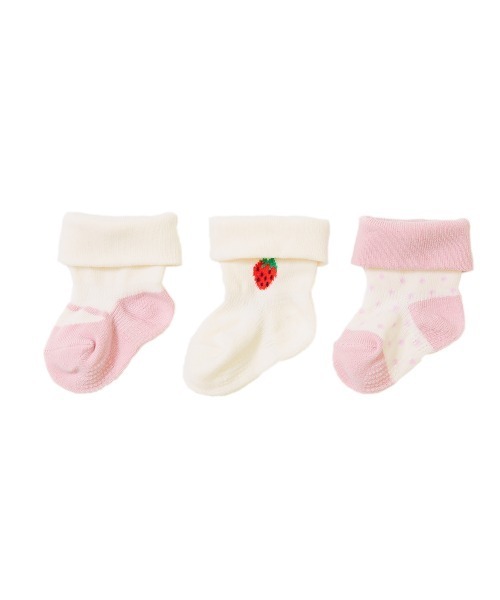 足元を彩る『ベビー ソックス3足セット』 足首には脱げ防止のゴム、足裏には滑り止めを付け、機能性にもこだわったかわいいベビー用ソックス。 また、3枚セットなので洗い替え時にも役立ちます。 ■素材■ - ■ディティール■ 伸縮性:- ■備考■ 洗濯方法 洗濯機洗い可/弱い洗濯処理/漂白剤使用禁止/タンブル乾燥不可/日陰吊り干し/アイロン禁止 ご注意事項 ・平置きにて採寸しているため、サイズや形に多少の誤差が生じる場合がございます。あらかじめご了承ください。 ・摩擦や水、汗などで色が移ることがあります。ご注意ください。 子ども服devirock 男の子・女の子のデイリーウェアを中心に、ベビーからキッズまで豊富なラインナップの子供服を展開。 心地よいデイリーウェアや、トレンドの子ども服をお手頃価格で。幅広いサイズ展開で兄妹や親子でリンクコーデも楽しめます。
