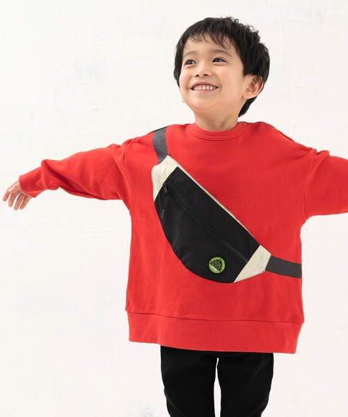 【デザイン】 たっぷりの身幅にボディバッグをかけたようなインパクト抜群のだまし絵デザインのキッズトレーナー♪大きなボディバッグのファスナー部分がポケットになっている遊び心にあふれた1着◎キッズもお友達に自慢したくなっちゃうスウェットトレーナーです☺ 【素材】 本体綿100%の裏毛なのでインナー次第で長く着られるのも嬉しい◎ ******************** 透け感:なし 伸縮性:あり 生地の厚さ:普通 裏地:なし(裏毛) ポケット:ボディバッグ部分がポケット ******************** *80、90サイズのみ左肩にボタンがついており、脱ぎ着がしやすくなっております。 *DILのベビー商品は、全てホルマリン含有率の検査を通っておりますのでご安心下さい。 抗菌加工 ・効果は永久的なものではありません。 ・お洗濯を繰り返す事により効果が低下します。 ・ウイルスなどの侵入や感染を防ぐものではありません。 【DILASH ディラッシュ】 こだわりの素材と加工感、ヴィンテージ・リメイクテイストを加えた、アメリカンカジュアルブランド。 さらに豊富なカラーバリエーションで、明るく元気で楽しい毎日を演出する、そんなコーディネートを提案します。