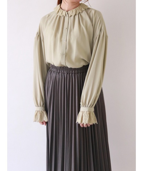 刺繍衿で一味違う雰囲気に仕上げたブラウス。ふんわりとしたボリュームスリーブが、旬な着こなしへと導きます。程よく入ったギャザーで女性らしい柔らかなシルエットに。ベーシックに着られるカラーリングなのでどんなコーディネートにも合わせやすい、今季おすすめのアイテムです。