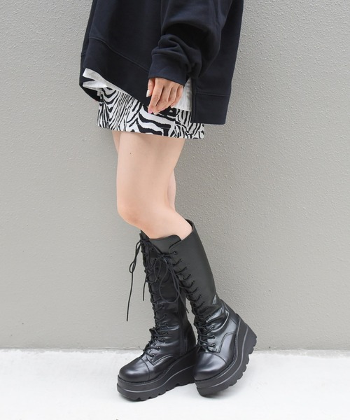 ボリュームソールの重ためディテールが今っぽい!レースアップロングブーツ。 高低差の少ない厚底ソールで足にかかる負担を軽減しながらも、厚底ソールで即美脚になれる一足。 モードなモノトーンコーデにはもちろん、フェミニンアイテムと合わせて甘辛MIXコーデを楽しむのもおすすめです。 コーディネートのアクセントにマストな秋冬靴 ロング丈のレースアップで足元を引き締めてコーディネートをシーズンライクに仕上げます。 ボリュームのあるソールで美脚効果抜群! シルエットを綺麗に見せてくれる優秀アイテム。 サイドジップで着脱が簡単に出来るのも◎ 【おススメPOINT】 ●レースアップでスタイリング引き締め効果抜群 ●厚底ソールで美脚効果抜群のアイテム ●この秋冬、注目のロングブーツ ●歩きやすいのにしっかり盛れる優秀アイテム ★スタッフ着用コメント★ STAFF:まる 甲高:普通 甲幅:普通 普段履くサイズ 23.5CM (Mサイズ) 足長:23.4CM 足囲:23.4CM 足幅:9.2CM ひざ下:40CM ひざ上:33CM 身長158CM SとMサイズを試着しました。 足サイズは気持ちゆったりめでした。 Sサイズも試着してみましたが、かなり窮屈だったのでMで中敷きを入れて丁度良かったです。 筒周りはゆとりがありましたが、紐調節ができるので問題ない思います。 ミニ丈ボトムスやパンツインしても良いと思います。 STAFF:紫 甲高:高め 甲幅:広め 普段履くサイズ 23.5CM (MかLサイズ) 足長:23.0CM 足囲:23.5CM 足幅:9.6CM 膝下:40CM 膝上:31CM 身長:157CM Lサイズを試着しました。 丈感は丁度膝下で屈伸運動も問題無くできます。 幅感がゆったりめなので、幅広・甲高さんでも普段のサイズや1サイズ大きくすれば当たらずストレスなく履けます。 レースアップなので、ふくらはぎがガッチリしている人も挑戦できるブーツだと思います。 STAFF:こぶちゃん 甲高:普通 甲幅:広め 普段履くサイズ 24.5CM (LLか3Lサイズ) 足長:23.5CM 足囲:23.3CM 足幅:9.0CM ひざ下:42CM ひざ上:30CM 身長:163CM LLサイズで筒周りが少しきつく感じましたが、全面編み上げになっているので、調節でき違和感なく 履くことができました。ロングブーツとは思えない程、軽く足運びもとてもスムーズに 歩くことが出来ました。ヒールも思ったよりも高く感じました。 身長も盛りたい人にはおススメです!! ▼商品のデザインやお客様の足の形により、感じ方に若干の個人差があります。▼モデル着用写真は撮影環境により、多少実際のカラーと異なる場合がございます。 ☆NOFALLsango ZOZOTOWNお買い物ガイド☆お買い物をよりお楽しみいただく為に ▼商品のお気に入り登録 💛をクリック!完売カラーの再入荷通知・お気に入りアイテムの値下げ・ラスト1点などの通知をお知らせいたします。 ▼ブランドのお気に入り登録 💛をクリック!新商品や再入荷などお得な情報を受け取ることができます。