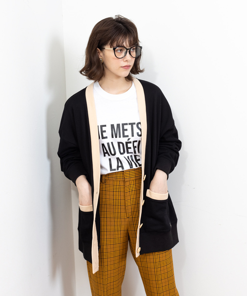 *POINT*フランス語で『自分の人生にチャレンジ』といったメッセージロゴを大胆にプリント!*DESIGN*胸元のロゴがポイントになったベーシックロンT。ジャケットやカーディガンを羽織ったとき、ロゴが綺麗に見える位置にデザインしたのが拘りポイント。中肉素材で透けにくく、ゆとりのあるサイズ感で一枚で着てもサマ見えします。*COORDINATE*ブラックとブラウンのロゴで大人っぽく使えるアイテムです。コーディネートにエッジを利かせたいときや、カジュアルさを加えたい時に合わせて頂くとおすすめ。中肉素材で透けにくいコットン100%素材。ロゴには少し光沢感があります。