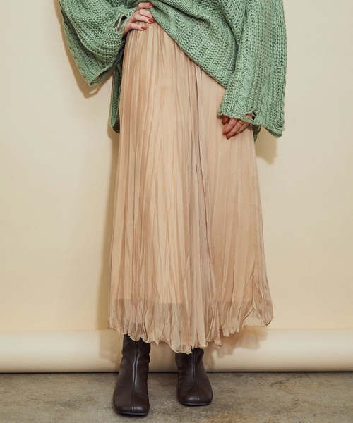 フェミニンで軽やかなランダムプリーツスカート【素材】軽さのあるシフォンジョーゼットを使用【デザイン・シルエット】ランダムプリーツを施すことで、見た目にも軽さの感じられるフェミニンな印象のスカートです。また、ウエストゴムで着脱し易く、ウエストマークでスタイルUPも叶えられます。【カラー】シャープなニュアンスライトグレーと柔らかいニュアンスベージュウエストのゴム部分のカラーは下記です。08カラー:チャコールグレー27ベージュ:ベージュ【おすすめのスタイリング】タイトなトップスやショート丈トップスとの合わせが今年らしくお勧めです。----------------------------------裏地:あり透け感:多少あり伸縮性:なし光沢感:多少あり生地感・厚さ:薄手ポケット:なし開き:ウエストゴムケア方法:石油系溶剤によるドライクリーニング----------------------------------【モデル着用サイズ】茶髪のモデル身長:160cm 着用サイズ:38黒髪のモデル身長:167cm 着用サイズ:38※店頭・室外で撮影している画像は、光の当たり具合で色味が若干異なって見える場合がございます。商品の色味は、スタジオ撮影の画像をご参照ください。※画像の商品はサンプルです。 実際の商品と仕様、加工、サイズが若干異なる場合がございます。※店舗での商品のお取り扱いについてROPE'の商品は、ROPE'実店舗のみの取り扱いになります。また、MADEMOISELLE ROPE' の商品は、MADEMOISELLE ROPE' 実店舗のみの取り扱いになります。※商品の入荷状況は、店舗までお問い合わせをお願いいたします。マドモアゼルロペ/マドモアゼル/マドモアゼル ロペ