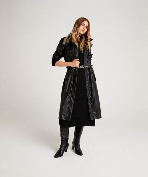 艶のあるフェイクレザーを使用したクラシカルな佇まいが魅力のロングコート。ウエストにはギャザーを施し、女性らしいメリハリのあるシルエットを実現しました。羽織るだけでスタイリングが様になる、クラス感が漂うアイテムです。 まずは【お気に入り登録】を。商品の情報がお届けしやすくなりました♪ ご購入後はぜひWEARへのコーディネート投稿♪ お待ちしております。
