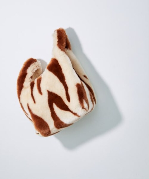 【Design】秋冬にぴったりな存在感のあるjakke.のフェイクファーバッグ。片方のハンドルに、もう片方のハンドルを通してワンハンドルにもなる2way仕様。大きめサイズで華やかかつモードな雰囲気が漂います。【Material】ブランドコンセプトである ”動物保護” をモットーに採用したエコファー(アクリル・ポリエステル)を使用。【Color】コーディネートのアクセントになるchestnut tiger(22 チャイロサブ)と、品番違いでCream(83 クリーム)の2色展開で