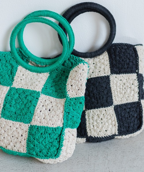 27枚のモチーフを交互に組み合わせたチェッカー柄ハンドクロシェバッグです。持ち手は同じ糸1色で巻いた持ちやすいリングハンドル。しっかりとした編み地でトリミングしていて、モチーフ1個分のマチがあるので、たくさんのものも入れられます。編みバックならではシルエット、素材感が魅力の逸品です。※撮影画像はサンプル品を使用しているため、実際の商品と仕様、加工、サイズが若干異なる場合がございます。また、可能な限り実物に近いカラーにて掲載していますが、使用しているパソコンのモニター設定や、携帯電話のメーカー・機種により実際のカラーと異なって見える場合がございます。予めご了承ください。▼商品のお気に入り登録ハートマークをクリックし、お好きなカラーを選んでお気に入りに登録完売カラーの再入荷通知や、ラスト1点の通知、セールの通知も受け取ることができます。▼ブランドのお気に入り登録新商品や再入荷等、いち早くブランドのお得な情報を受け取ることができます。<返品・キャンセルについて>・着用・洗濯後の返品・ご交換は致しかねます。・商品到着後、着用前に商品を確認して頂きますようお願い致します。※生産時期により色・素材・サイズ感など多少異なる場合がございます。※掲載画像の商品の色味は、屋外や屋内の光の照射や角度により実物と色味が異なる場合がございます。また表示のサイズ感と実物は若干異なる場合もございますので、予めご了承ください。