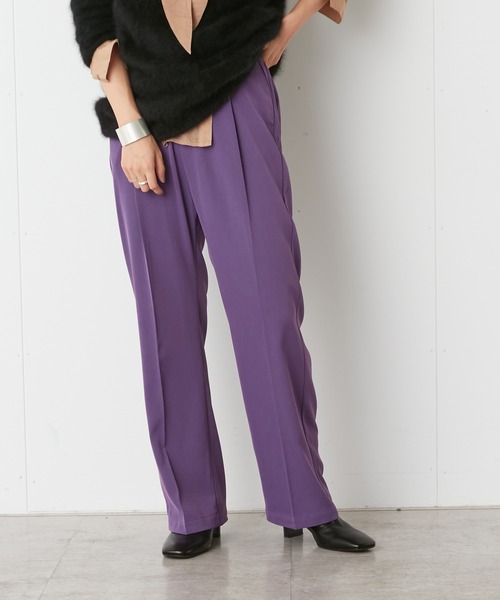 きれいなシルエットでスタイルアップが叶うフロントサイドボタンパンツ・綺麗なストレートラインとセンタープレスで、足を長く見せ美脚効果のあるパンツです。・ウエストのサイドボタンはサイズの微調整が可能で、また後ろがゴムになっているため、楽に穿いていただけます。・シンプルなデザインで、カジュアルはもちろんきれいめやオフィスのスタイリングにも合わせていただけます。・足のラインを拾いにくい素材感で、シーンをえらばず着用していただけます◎・透け感:なし・裏地:なし・伸縮性:あり・生地の厚さ:普通 ・光沢:なし<洗濯方法>手洗い洗濯可能--------------------------------------・着用モデルブラック、ブラウン:身長:160cm / 体型:普通 / サイズ:38パープル:身長:158cm / 体型:普通 / サイズ:38-------------------------------------- 【商品のお気に入り登録】♡をクリックで気になるアイテムをお気に入り登録していただくと、以下の通知を受け取ることができます。・入荷・再入荷・ラスト一点・セール対象時【ブランドのお気に入り登録 】 新商品や再入荷、セール、クーポン配布などお得な情報を受け取ることができます。--------------------------------------※商品の色味は、撮影場所や光の当たり具合などにより色味が異なって見える場合がございます。また、お客様のお使いのPC・スマートフォン等のモニター環境などにより色味が異なって見える場合がございます。予めご了承の上ご注文ください。