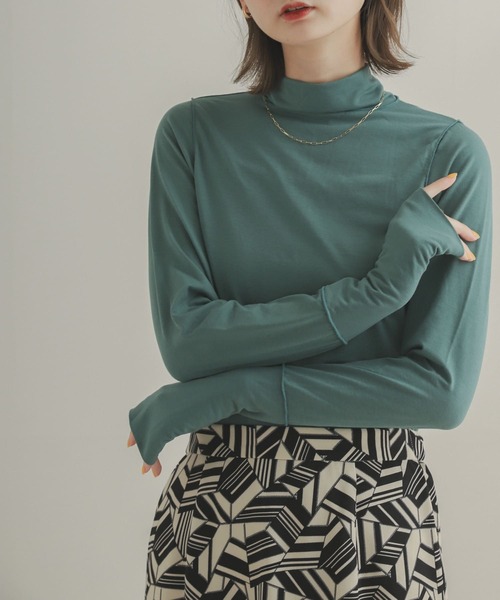 《堀田真由さん着用アイテム》 袖口にクシュっとたまるサムホールデザイン アウトシームがこなれ見えするタートルネックカットソー 〇アウトシームがポイントになり、デザインにメリハリを与えてくれる一枚 〇計算されたタートルネックの高さで程よく首にフィットします 〇長めの袖丈にサムホールデザインをプラスしアクセントに styling トップスとしてミニマルなスタイルはもちろん、シャツやニットのインナー使いでスタイリングがクラスアップするアイテムです。 material 伸びの良いベア天竺を使用した着心地抜群な一着 ※商品画像は、光の当たり具合やパソコンなどの閲覧環境により、実際の色味と異なって見える場合がございます。予めご了承ください。 ※商品の色味の目安は、商品単体の画像をご参照ください。 ----------------------------- 透け感 : ややあり(IVORYのみ) 伸縮性 : あり 裏地 : なし 光沢 : なし ポケット : なし -----------------------------