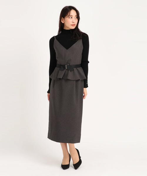 おしゃれ最先端のビスチェとタイトスカートのセットアップ 家庭洗濯可能でイージーケアながらウール見えする生地感のグレー、ナチュラルテンションがあり心地もよく、オールシーズン着られる生地感の千鳥格子柄の2カラーでご用意しました。 ビスチェはウエストから広がるペプラムデザインが着こなしにメリハリをプラス。 ビスチェの後ろ側にはシャーリングゴムが入っているのでよくフィットします。 スカートはすっきりIラインシルエットで、お仕事用にもピッタリ。 セットでも単体使いでも活躍しそうな1着です。 洗濯:洗濯機使用可 トップスウエスト:74㎝ ベルト:72㎝ ※商品画像はサンプルのため、色味やサイズ等の仕様に変更がある場合がございますので、予めご了承ください。