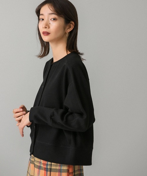 【ロングスパンの活躍が期待できるカーディガン】 リブ仕様やリングドットボタンが印象的なカーディガン。ベーシックなシルエットはロングスパンでの活躍が期待できます。合わせるアイテムを選ばずに着ていただけるので、デイリーユースに重宝する1着です。 POINT ・ロングスパンの活躍が期待できるベーシックデザイン ・リブ仕様&リングドットボタン ・シーズンムード漂う落ち着いたカラーリング COORDINATE カーディガンのみならず、シャツをレイヤードしたりトップスとしても活躍してくれます。コンパクトなサイス感なのでアウターのインナーとしても最適です。 ----------------------------- 《スタッフ着用コメント》 年齢 : 20代前半, 身長 : 155cm, 体型 : 普通 普段の着用サイズ : トップスS~L/ボトムスS,M 【着用カラー/サイズ】BLACK/one 【サイズ感】腰くらいの丈感で、袖はちょうどピッタリでした。コンパクトなサイズ感ですので、トップスとしても使えます! 【素材感・着心地】生地はしっかりしており少し固めです。洗濯機で洗えますのでご自宅でお手入れ可能です。 【その他】ボタンは閉めても開けても可愛く、トレンドにとらわれないアイテムです!秋の羽織りにも使えます。ワンピースやハイウエストなボトムスと相性良いです◎ ----------------------------- ※商品画像は、光の当たり具合やパソコンなどの閲覧環境により、実際の色味と異なって見える場合がございます。予めご了承ください。 ※商品の色味の目安は、商品単体の画像をご参照ください。 ----------------------------- 透け感:なし 伸縮性:ややあり 裏地:なし 光沢:なし ポケット:なし -----------------------------