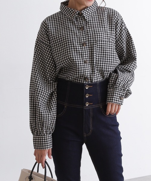 色によって生地が異なるボリュームスリーブ短丈シャツ。ブラックはギンガムチェック柄、ブラウンはチェック柄、ホワイトは無地の柔らかいコーデュロイ素材を使用した3色展開です。 ビッグシャツの裾を切ったような雰囲気の短丈デザインと、ボリュームスリーブがポイントです。 ゆるっとした着心地ながらも、丈が短いのでウエスト位置を高く見せ、どんなボトムともスッキリと合わせやすいです。 ●商品特性● 〇透け感:なし 〇生地の厚さ:普通 〇裏地:なし 〇伸縮性:なし 〇光沢:なし 〇シルエット:スタンダード 〇インフォメーション〇 ★商品のお気に入り登録 登録すると、完売しても再入荷時に通知を受け取ることができます。 ほかにもお得な特典があるかもしれません♪ ★ブランドのお気に入り登録 新商品や再入荷などの情報を受け取ることができますので、是非ご登録ください♪