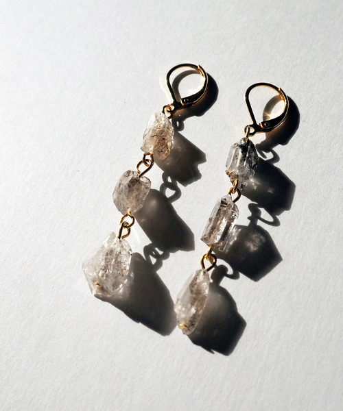 原石の結晶の形を残したまま仕上げた天然の水晶のピアスです。 粒によって水晶が形成される途中に出来た筋状の層が見られ、 天然の魅力を感じて頂ける美しいお品です。 石の所々違うカラーや形が個性的。 ゴールドのパーツと組み合わせた事により肌馴染みがよく、 女性らしくも、カジュアルにも扱いやすいアイテムです。 全てのパーツに、金属アレルギー対応のサージカルステンレスを使用しております。 (クリスタル内部茶色やグレーなど混合色) ※こちらの商品はひとつひとつ手作業で生産しておりますので1点1点の風合いが微妙に異なります。 ※お使いの端末や閲覧環境により、写真と実物の色味が多少異なって見えることがございます。 ※こちらの商品は受注生産のため、返品・交換ができません。 ************************************************ 【&O/アンドオー】 金属アレルギー対応のサージカルステンレス製パーツと、 天然石を使用したアクセサリーブランド。 アレルギーに悩んでいる方でもオシャレを楽しめるように。 そんな想いを込めてお作りしています。 サージカルステンレスは耐久性が高く、 特別なお手入れをしなくても、表面に傷がつきにくく、 海や温泉でのご使用にも錆びたり変色したりすることもほとんど無いため、 アレルギーのない方にも気軽に楽しんでいただけます。 ************************************************