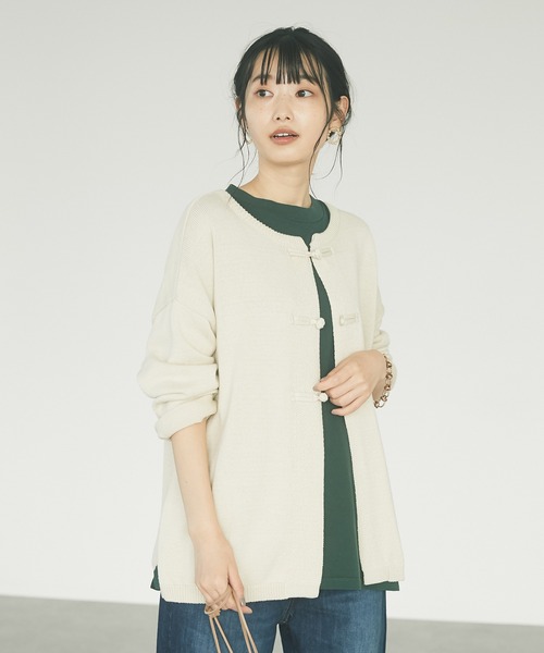 前後2WAYで着用でき、ボタンの開け閉め次第でカーディガンとしても着回せるマルチウェイニットが登場! 個性的でかわいらしく目を惹くデザインで、一点投入するだけで周囲と差がつくおしゃれ上級者コーデに。 チャイナ釦がアクセントになったニットカーディガン。 どんなアイテムともバランスよくスタイリング出来る、シンプルなラウンドネック仕様です。 裾はサイドにスリットを入れることでヌケ感をプラス。 もたつき感なくすっきりと重ね着することが出来ます。 カジュアルから綺麗めコーデにと、様々なスタイリングにも活躍してくれるアイテムです。 ◆Coordinate Point ・シンプルにロンT合わせでも◎ ・インナーにタートルネック【ハイネックニットプルオーバー:PA14L2C0500(店舗)】など、襟あるものを合わせてキチン感のある着こなしもおすすめです。 ・・・・・・・・ ◆Item Review ・生地の厚さ :普通 ・生地の風合い:柔らかい ・裏地 :なし ・ポケット :なし ・・・・・・・・ ◆How to Care ・洗濯:手洗い可 ・ドライクリーニング:可 ・タンブル乾燥:不可 ・日陰での平干しがよい ・アイロン:可 ※詳しくは商品記載の洗濯表記をご確認ください。  ̄ ̄ ̄ ̄ ̄ ̄ ̄ ̄ ̄ ̄ ̄ ̄ ̄ ̄ ̄ ̄ ̄ ̄ ̄ ● CRAFT STANDARD BOUTIQUE ● (クラフトスタンダードブティック) 丁寧な作りのアイテム、一生飽きないアイテム、毎日の気分を変えるアイテム。 それらをキュレーションしたお店が『クラフトスタンダード ブティック』です。 ▼商品のお気に入り登録がおすすめです ▼ 商品ページ内のハートマークをクリック。完売時の再入荷や、最後の1点の通知、コーディネート画像がアップされたとき、お得なお値下げの際の通知を受ける事ができます。 【お知らせ】ページでも通知が確認できます。  ̄ ̄ ̄ ̄ ̄ ̄ ̄ ̄ ̄ ̄ ̄ ̄ ̄ ̄ ̄ ̄ ̄ ̄ ̄