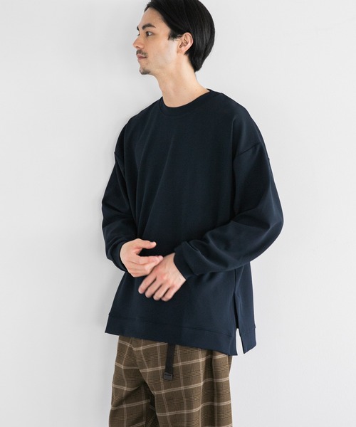 さらりと着こなすデザインロンTポリエステルベースの軽い質感のロングスリーブTシャツ。スウェットライクなシルエットと、サイドスリットで一枚でも雰囲気のあるアイテムです。これからの季節のボトムスやアウターとも相性の良い4カラーのラインナップ。一枚着に、インナーに、活躍間違い無しのアイテムです。
