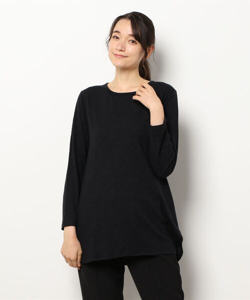 ゆったりこなれ感のあるシルエットが魅力のインナー。 ラウンドした裾のラインが旬顔のコーデをメイクします。 さらっと肌あたりのよいスラブ天竺を使用し、着心地の良さも抜群。 レイヤードコーデにも大活躍間違いなしの、ベーシックな1枚です。