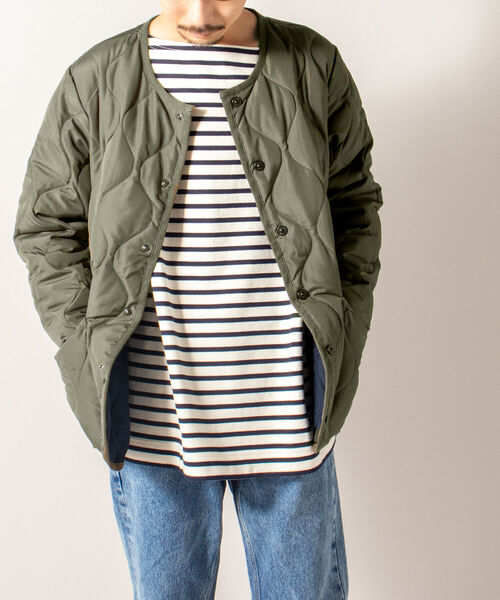 "【TAION】UNISEX ミリタリー クルーネック ダウンジャケット(TAION-104BML-1)with ストレージバッグ" ヘチマキルトがミリタリーテイストを醸し出すTAIONミリタリーラインの1着。 着脱をしやすくするため搭載した大きく開くサイドのファスナーがアクセントに、またベンチレーションの役割も担ってくれます。 コートのインナーにはもちろん、アウターとしての着用もしやすいデザインが嬉しいアイテム。 コンパクトに収納ができ、持ち運び便利な収納袋付き。外出や旅行時に最適です。 ※別売りのモッズコート(品番:1-0093-5-58-816)に装着可能です。 ※XXLはWEB限定アイテムとなっています。 ※ブラウンカラーはWEB限定アイテムとなっています。 【スタッフ着用コメント】 身長:170cm/体重:52kg/体型:細身/普段サイズ:M/着用サイズ:L インナーにパーカーやスウェットなどを合わせてアウターとして着用するのはもちろん、やや細身の為インナーダウン代わりに着用してもOK! サイドZIPを開閉してレイヤードも楽しめるアイテムです。 【TAION=体温(タイオン)】 「TAION」のブランド名の由来は、TAION=体温。 “クオリティーに対する圧倒的コストパフォーマンスを通した価値の追求”をスローガンとし、高品質で高機能なインナーダウンを幅広く展開しています。 色やサイズの豊富なバリエーションもTAIONインナーダウンの特徴です。 ●TAIONのダウン品質について 羽毛は軽く反発力に優れた650フィルパワー以上のダウンを使用しています。 表地は撥水加工を施した400T以上の高密度ナイロンタフタを採用。その為、水に強く汚れも付きにくい仕様に仕上げています。 ●ATTENTION ダウンは天然由来の素材であるため、稀に濃い色の羽が混入することがございます。 ※こちらは不良品ではございません。返品や交換につきましてはご対応出来かねますので、あらかじめご了承ください。 ※お取扱い上のご注意 アテンションタグを必ずご確認の上、着用又はお取り扱いください。 ※店頭及び屋外での撮影画像は、光の当たり具合で色味が違って見える場合があります。 ※商品画像に関しては出来る限り忠実に表示出来るよう努めておりますが、お客様がご利用のモニターの設定及び特性により、実際の商品と比較し色味に若干の誤差が生じる場合があります。 ◇商品のお気に入り登録◇ 【お気に入りに登録】を是非ご活用ください。 再入荷の通知や、ラスト1点の通知、セールの通知がいち早く届きます。 ◇ブランドのお気に入り登録◇ 新商品や再入荷など、いち早くブランドのお得情報が届きます。