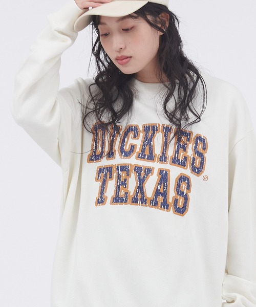 【Dickies(ディッキーズ)】ディッキーズとはアメリカ合衆国テキサス州で生まれたワークカジュアルブランドであり、世界約100ヶ国で展開されている。現在はワークウェアとしてだけでなく、ファッションブランドとしての地位も確立。全米各地の工場や米軍などに採用されるなど実用性を重視してきた歴史があり、 ファッションアイテムとして愛用される現在でも、生地の丈夫さやディテールには定評がある。1922年創業。■【Dickies /ディッキーズ】から、4パターン裏毛プリントスウェットの登場!トレンドの肩を落としたドロップショルダー、たっぷりとした身幅や袖口が、程よいルーズシルエットで着られるプリントスウェット。ゆったりとしたオーバーサイズですが、首元と袖先、裾部分はしっかりとした丈夫なリブ仕様になっており、ヒップまでかかる長めに設定された丈感は細部のディテールまでこだわったメリハリの効いた一枚。■4種のプリントパターンからカラーとプリントが選び放題!①大きく正面にDICKIES TEXASのカルチロゴのプリントが施されている【オフ①/ブルー①】②バッグロゴプリントと前左胸にロゴプリントが施されている【オフ②/ブラウン②】③バック手書き風プリントと前左胸にロゴプリントが施されている【オフ③/ラベンダー③】④バックスクエア柄プリントと前左胸にロゴプリントが施されている【オフ④/ブラック④】旬なカレッジデ風ザインを含む、個性のあるプリントアイテム。パンツやデニムとの合わせは相性抜群ですが、異素材のスカートやプリーツスカート等合わせてスポカジMIXでスタイリングするのもおすすめコーデです。カジュアルMIXコーデが決まるロングシーズンさらっと着られる万能プリントアイテムです。■コットン100%素材で柔らかで肌触りの良い着心地コットン100%素材を選定し、吸水性があり、通気性が良いので、水分は外に発散されるので着心地も抜群。すべてのプリントデザインが柄ボトムとの合わせも効く、程よいプリントデザインです。使い回し抜群、様々なボトムスに対応するプリントスウェットに注目!